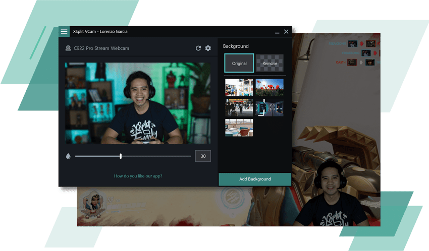 vcam xsplit blur background pc resize